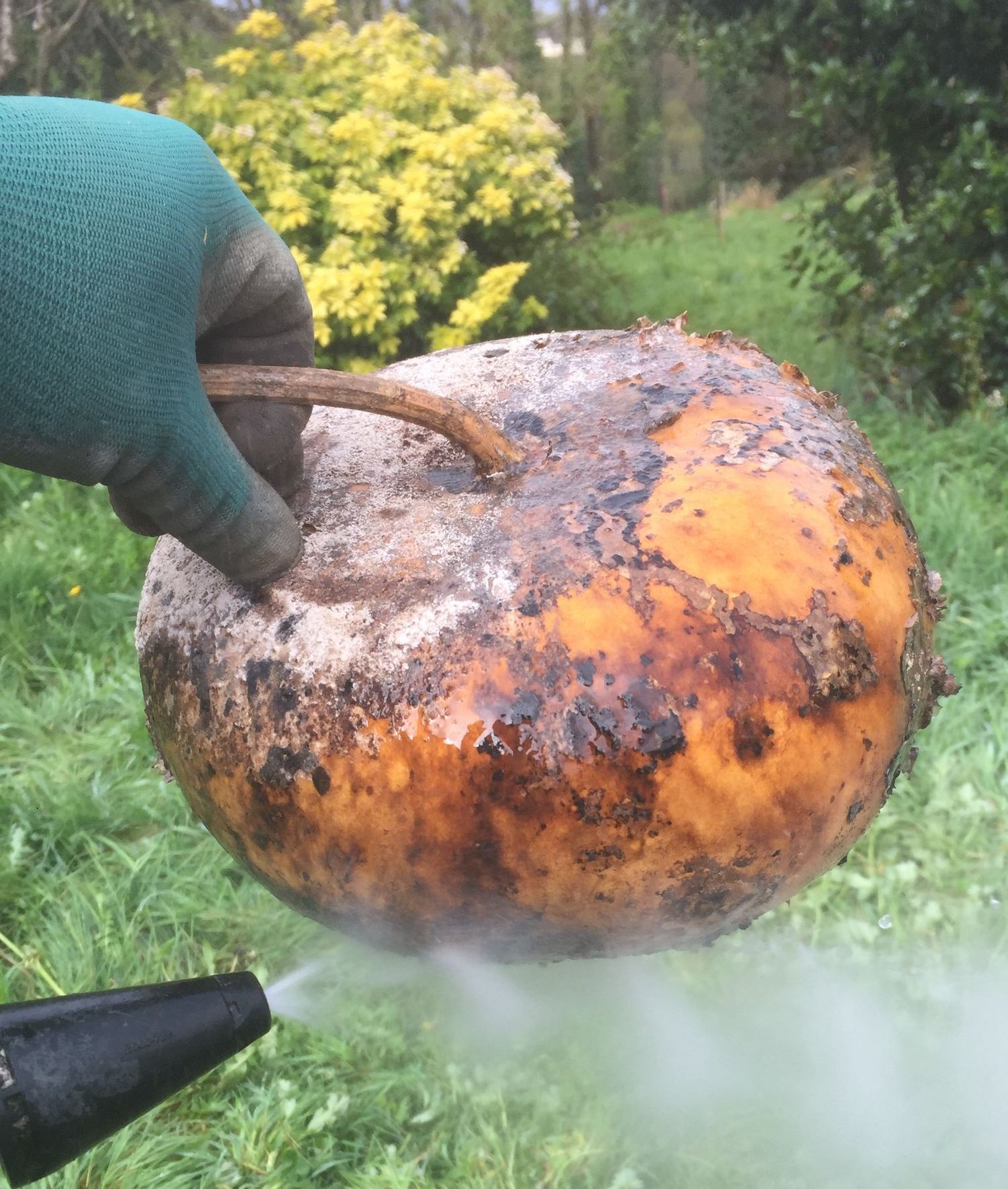 Avant de les stocker à l’abri de l’humidité, je les nettoie et découvre la nouvelle couleur de la courge
