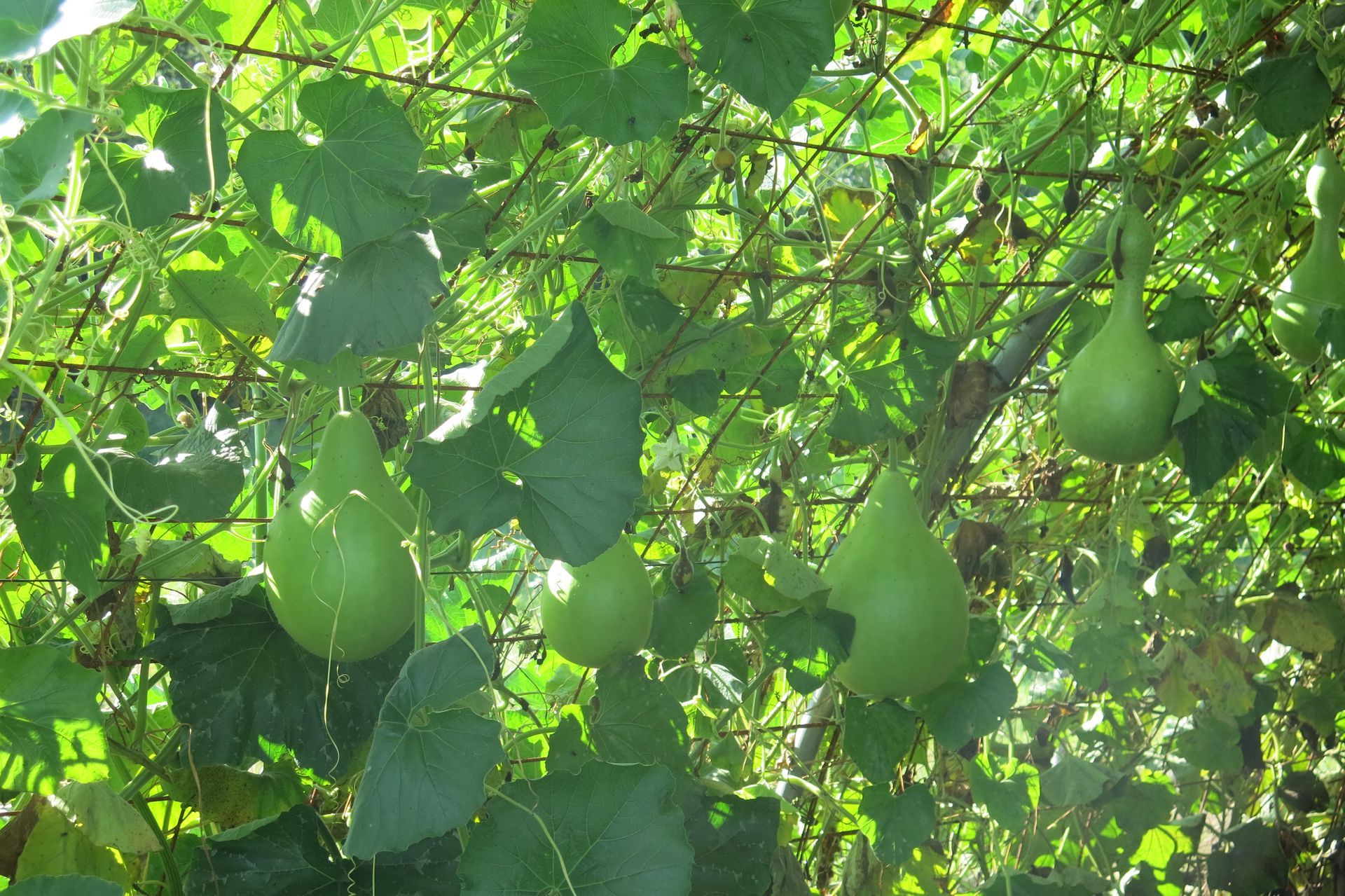 Depuis 2016, je suis autonome en matière première. je cultive cette courge lagenaria, en Bretagne, en extérieur.
